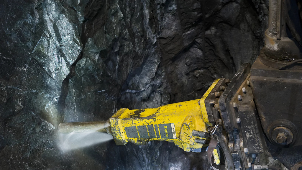 Martillo hidráulico Indeco HP 1200 FS trabajando en roca